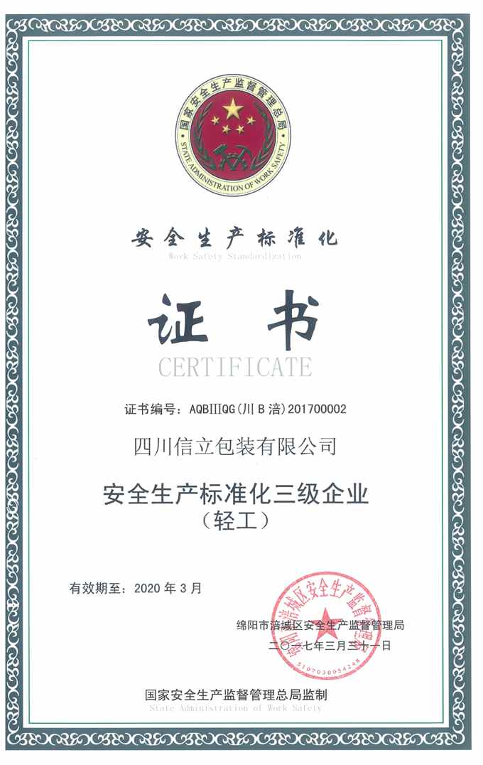 安全三级达标证书
